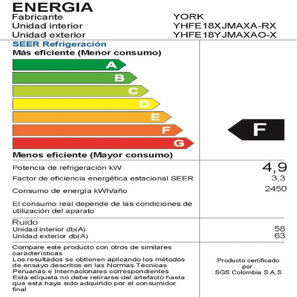 Aire Acondicionado Split Pared York De 18 000 Btu Hr Frio Solo Ecologico Oechsle Oechsle